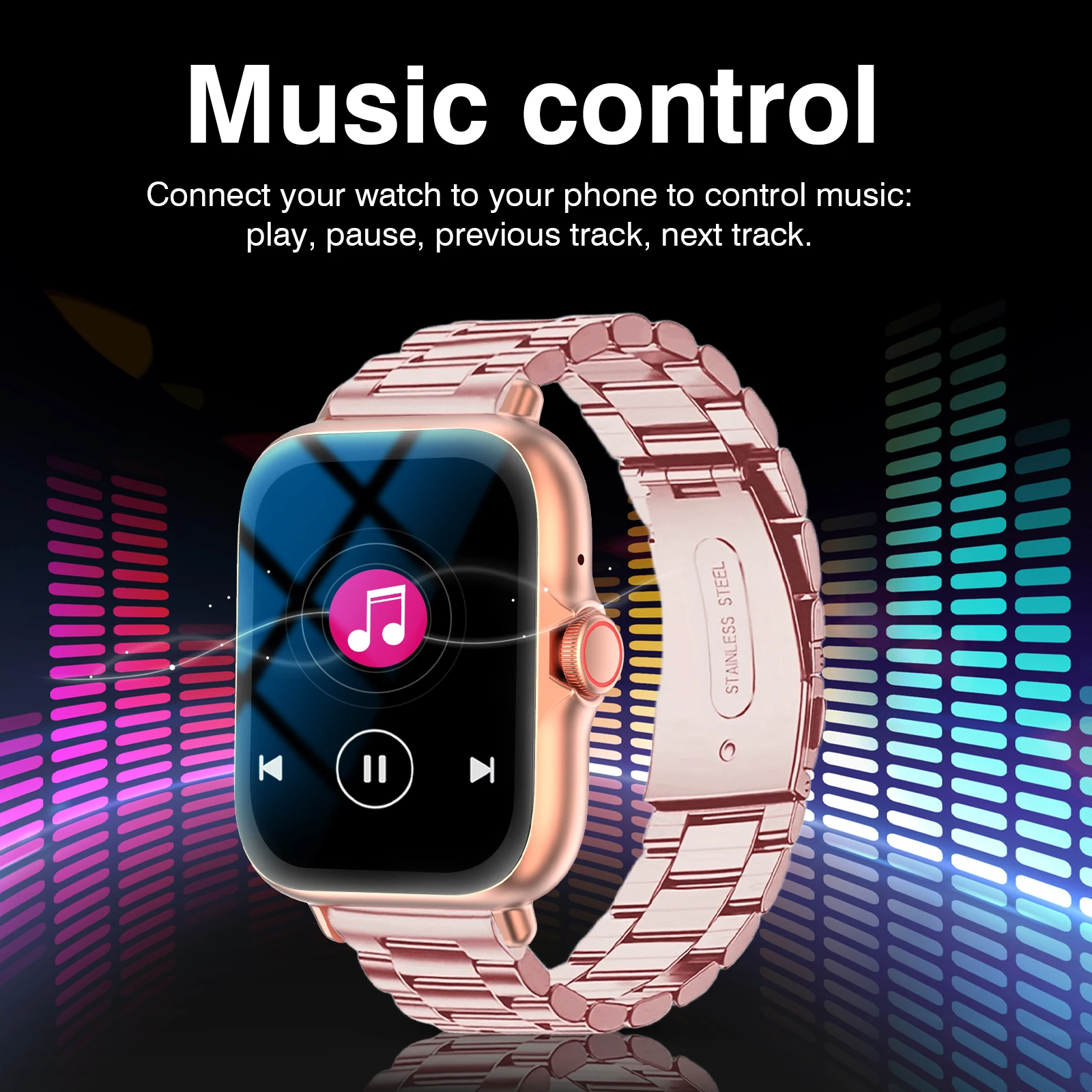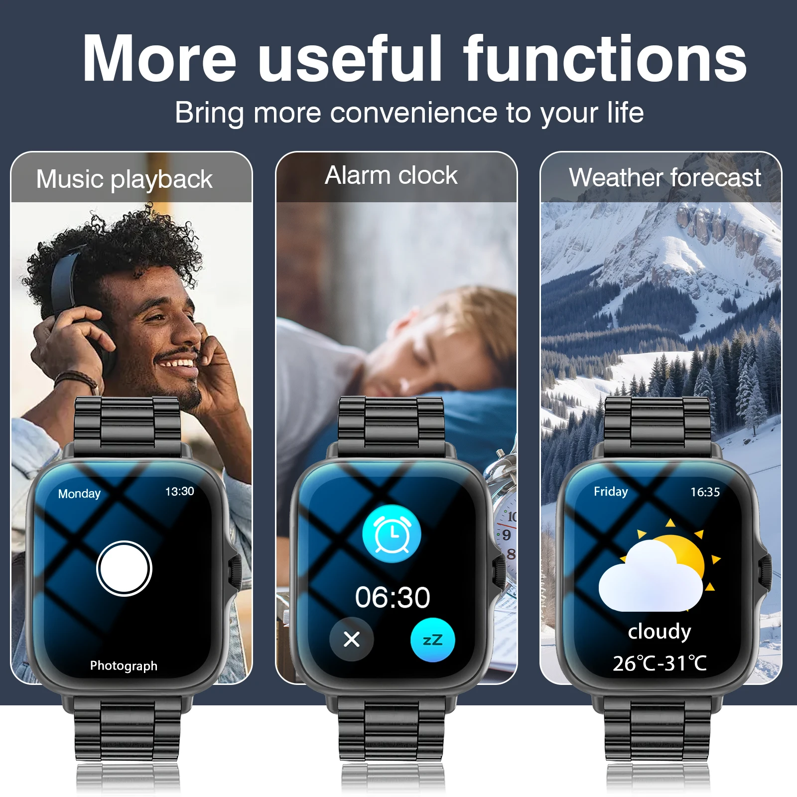 Custom wallpaper, Bluetooth call, music control, social APP message reminder, incoming call reminder, SMS reminder, multi exercise, alarm clock reminder, sedentary reminder, search for mobile phone, music playback, stopwatch, step counting, distance, calories, sleep monitoring, searching equipment, language switching, and raising your hand to brighten the screen.